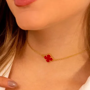 Colar Feminino Trevo Texturizado - Aço inox 316L